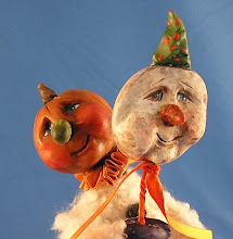 I will miss pumpkin witchie. She is soon going to a new home. Here is a picture of her. She will be joined by frog prince ornament. I so appreciate this customer who has purchased several of my works.